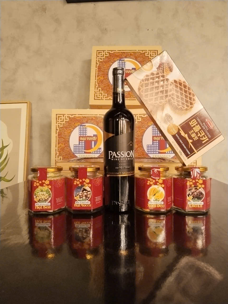 - Gồm Thức uống Vang Passion, ngũ cốc thượng hạng và bánh nhập khẩu, phù hợp cho các hộp quà Tết Long Khánh.