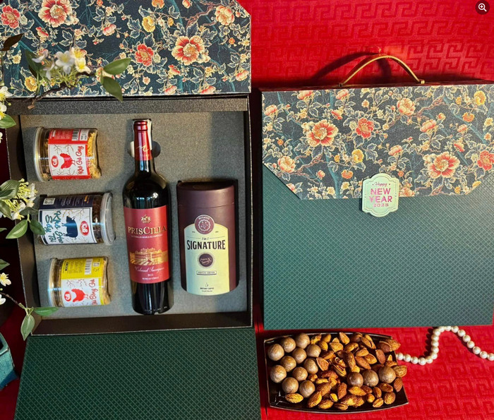 - Đối tác, khách hàng: Hộp quà cao cấp với rượu vang, nhân sâm và sô-cô-la – thể hiện sự trân trọng, đẳng cấp.