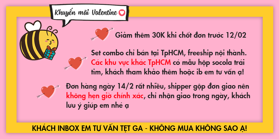- Đặt hàng trước ngày 12/02 để nhận ngay ưu đãi giảm 30.000đ, giúp bạn tiết kiệm chi phí mà vẫn sở hữu món quà Valentine hoàn hảo.