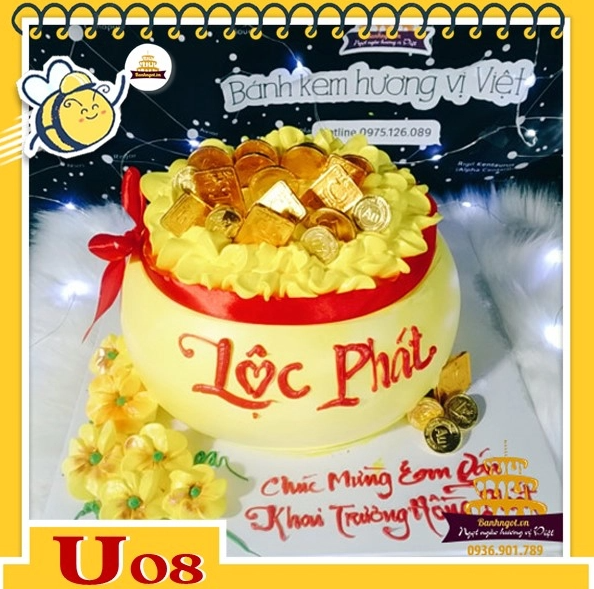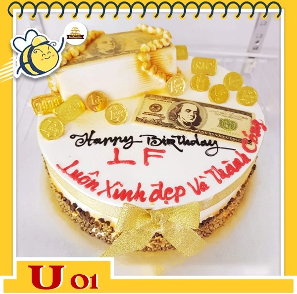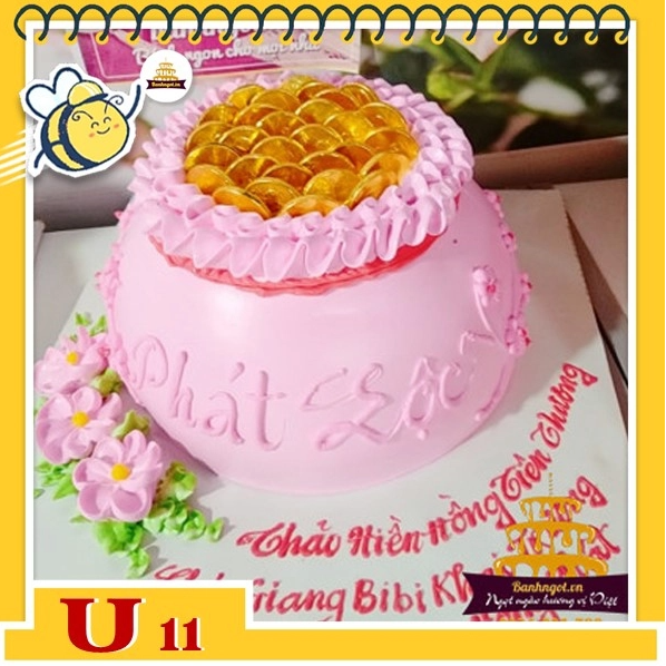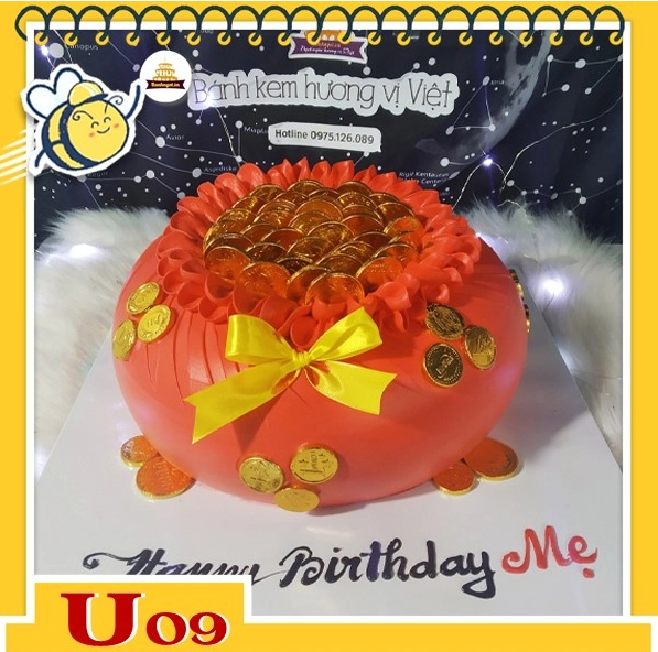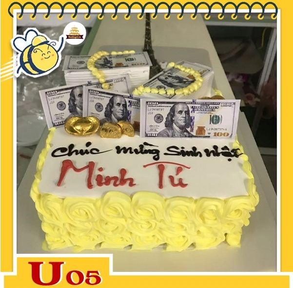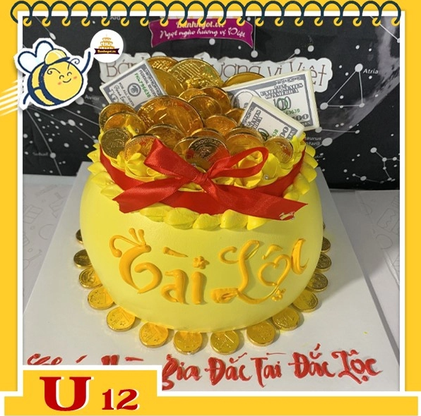 Bánh kem U13 hũ vàng tiền vàng đô la mừng khai trương hồng phát