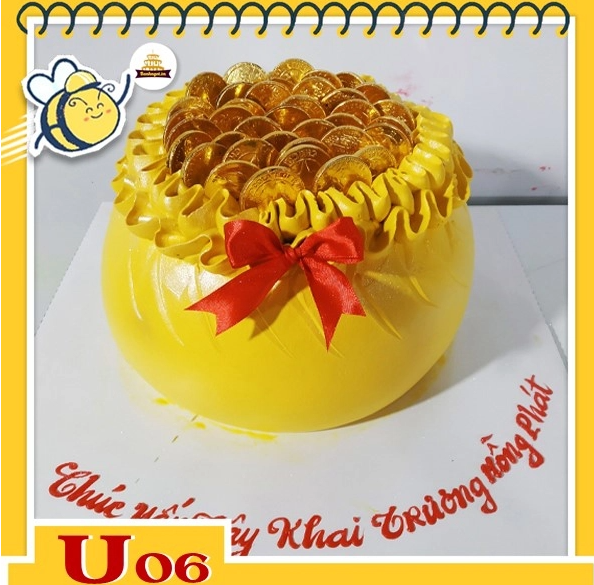Bánh kem hũ vàng tiền đô U06 màu vàng nơ đỏ mừng khai trương hồng phát