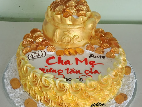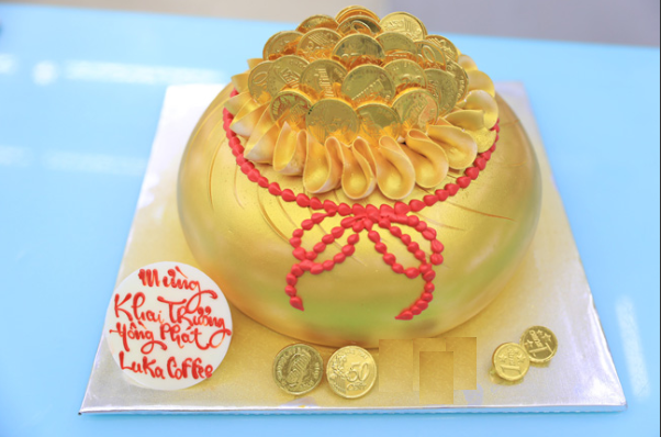 Khai trương là dịp quan trọng vì thế có rất nhiều mẫu bánh kem cho sự kiện này, bạn có thể thỏa thích lựa chọn. Các mẫu bánh kem tân gia hình đồng tiền, nén vàng mang ý chúc tài lộc, chúc phúc cho công ty làm ăn phát đạt, sung túc quanh năm.
