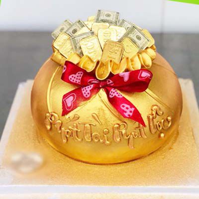 Bánh kem hũ vàng tiền đô U06 màu vàng nơ đỏ mừng khai trương hồng phát