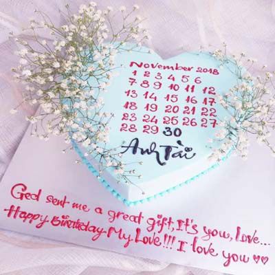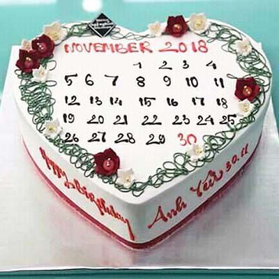 Mẫu bánh kem hình hình lịch tháng hình trái tim cực kỳ được yêu thích bởi sự kết hợp giữa trái tim và hình lịch tháng giúp cho ý nghĩa của chiếc bánh trở nên hay hơn, phù hợp nhất là dành tặng người yêu dấu như bạn trai bạn gái hay là vợ chồng.