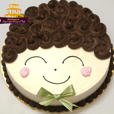 Bánh kem mặt cười Z01 cậu bé đeo nơ tóc màu nâu quăn quăn dễ thương
