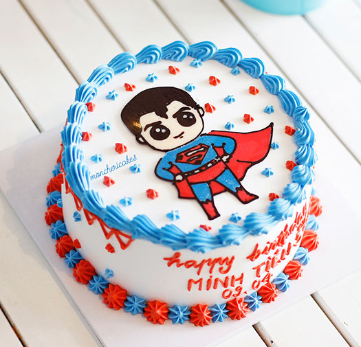 Các bé trai thường sẽ có ước mơ trở thành siêu anh hùng giải cứu thế giới. Siêu nhân có lẽ là một trong những nhân vật hoạt hình được các bé trai yêu thích nhất bởi có sức mạnh phi thường và luôn đứng về lẽ phải, đánh bại kẻ xấu. bánh kem đẹp cho bé trai hình siêu nhân sẽ được kết hợp bởi 2 tone màu chủ đạo là xanh và đỏ giống như màu quần áo đặc trưng của nhân vật này.