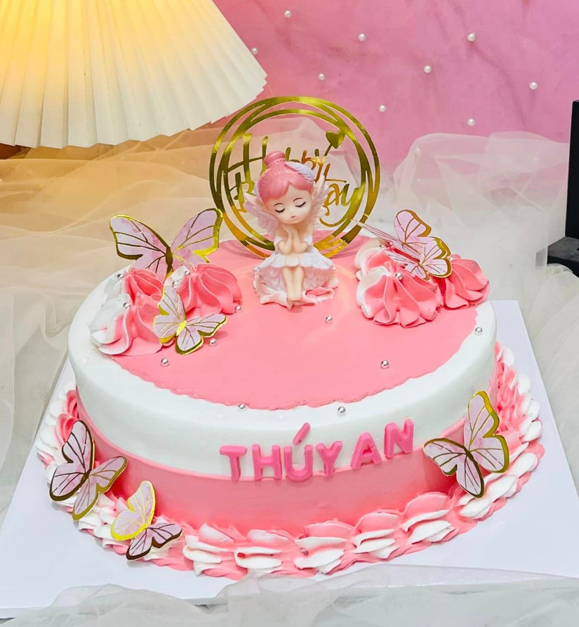 Bánh kem E27 sinh nhật con gái thiên thần nhỏ màu hồng cánh trắng đáng yêu