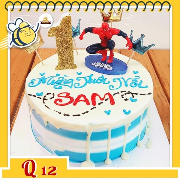 Bánh kem P64 nền trắng cắm người nhện bằng nhựa cho bé trai