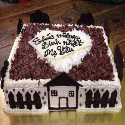 Dù bạn và vợ/ chồng bạn đã có cho mình một mái ấm nhỏ riêng tư hay chưa cũng đều có quyền mua và tặng người ấy chiếc bánh sinh nhật hình ngôi nhà. Chiếc bánh kem được đầu bếp thực hiện tỉ mỉ, nói lên bao nỗi niềm và mơ ước hoài bão của 2 người.