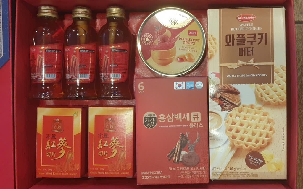 - Set quà cao cấp: vang nhập khẩu, nhân sâm Hàn Quốc, và sô-cô-la.