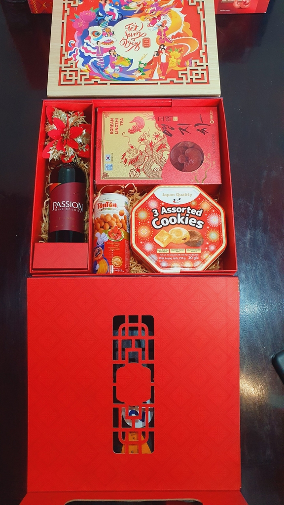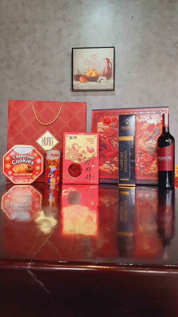 Giỏ quà “Bình An” là sự kết hợp giữa vang nhập khẩu, trà thảo mộc cao cấp và các món ăn nhẹ tinh tế. Được gói ghém trong hộp đựng và túi xách sang trọng, đây là món quà Tết hoàn hảo để gửi gắm lời chúc bình an, tài lộc và hạnh phúc đến gia đình, bạn bè, đối tác và khách hàng.