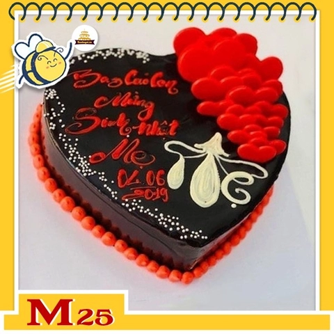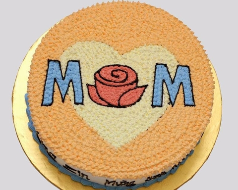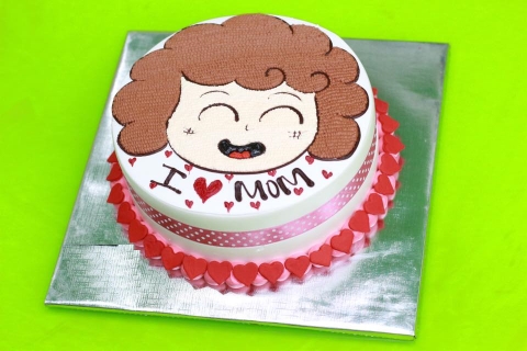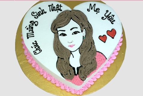 Hình ảnh mẹ hiện lên thật hiền hậu và ngọt ngào trên chiếc bánh kem hình trái tim ngọt ngào và thú vị.
