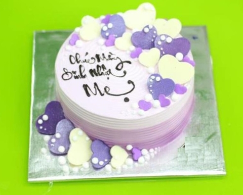 Chiếc bánh kem với hai tone màu trắng và tím ngọt ngào mừng sinh nhật mẹ.