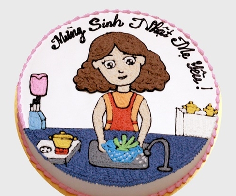Bánh kem vẽ hình chi bi ngộ nghĩnh, phác họa hình ảnh của những người mẹ thương yêu sẽ là chiếc bánh kem vô cùng ý nghĩa để dành tặng mẹ nhân dịp sinh nhật đấy.