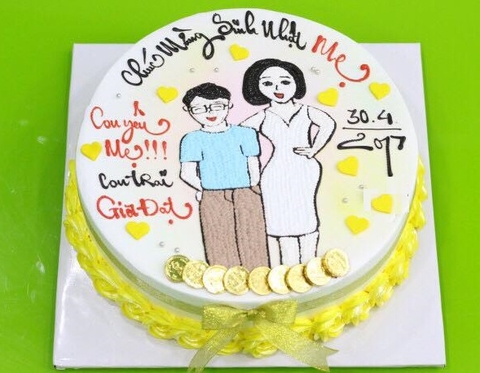Bánh kem vẽ hình mẹ và gia đình ngọt ngào và ấm áp
