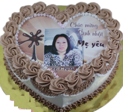 Chiếc bánh kem hình trái tim bắt bông hoa hồng chocolate ngọt ngào in hình người mẹ thân yêu rất ý nghĩa và dễ thương đúng không nè!