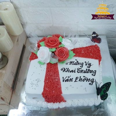 Bánh kem sinh nhật H488 hoa hồng đỏ viền kem cùng bướm xinh