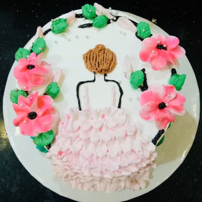 Bánh kem sinh nhật CF19 màu hồng cùng búp bê bé gái xinh iu