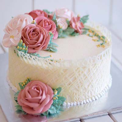 Bánh kem sinh nhật CF16 hoa màu hồng phấn ngọt ngào lãng mạn