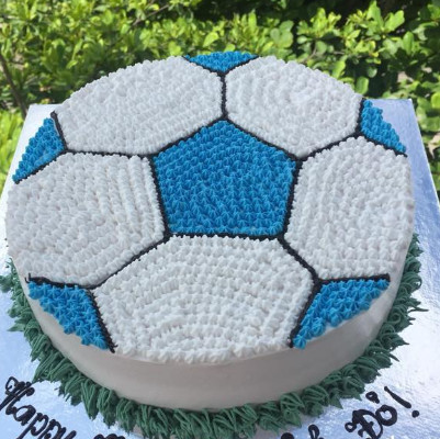 Bánh kem P76 vẽ hình sân cỏ bóng đá cùng những hình dán em bé trai vui vẻ
