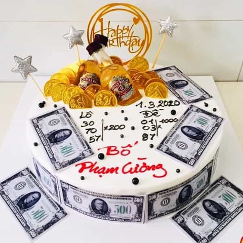 Mẫu bánh kem đẹp D59 phủ socola cắm phụ kiện tiền vàng đôla