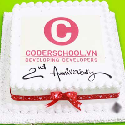 Mẫu bánh sinh nhật hình vuông in logo tặng đối tác ở Ý Yên Nam Định