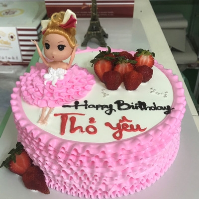 Bánh kem sinh nhật CF19 màu hồng cùng búp bê bé gái xinh iu