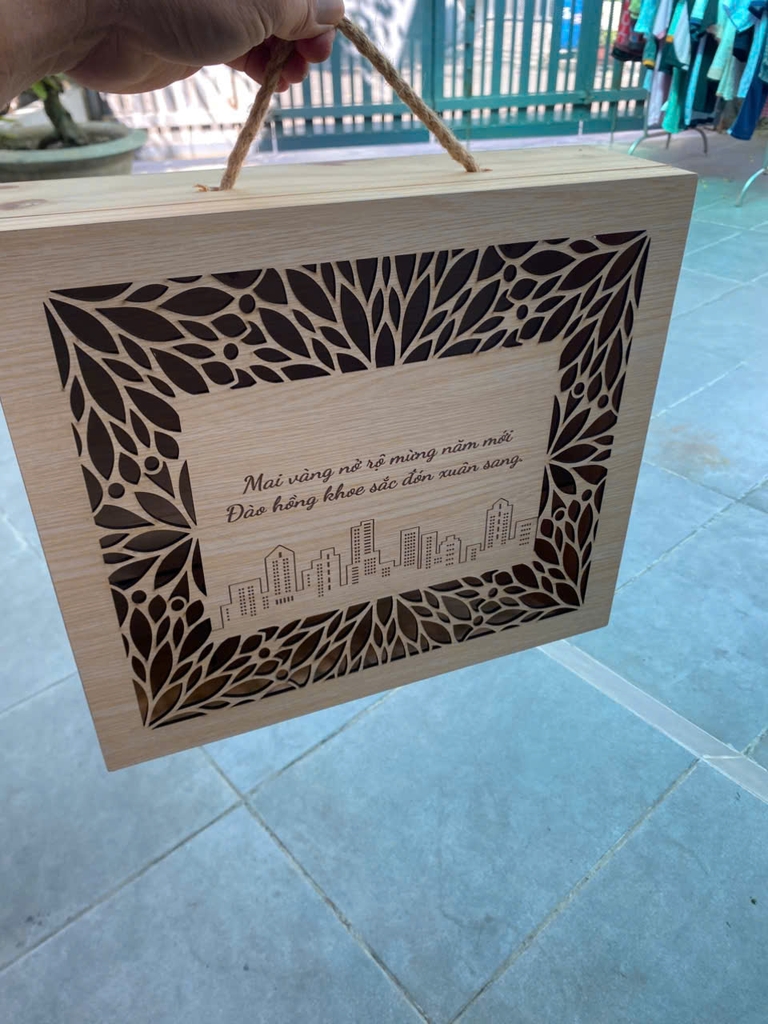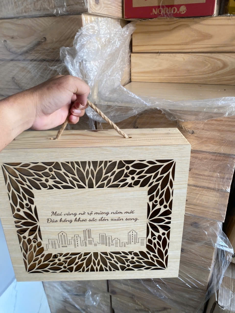 [Xả kho - Giá thanh lý] Hộp gỗ thông đựng quà tết sang trọng KT 210x355x100 mm
